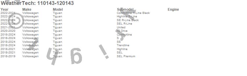 Below is an abbreviated list of applications for the MudFlap No-Drill DigitalFit MudFlap Kit.Tiguan, Volkswagen, 2024, 2023, 2022, 2021, 2020, 2019, 2018