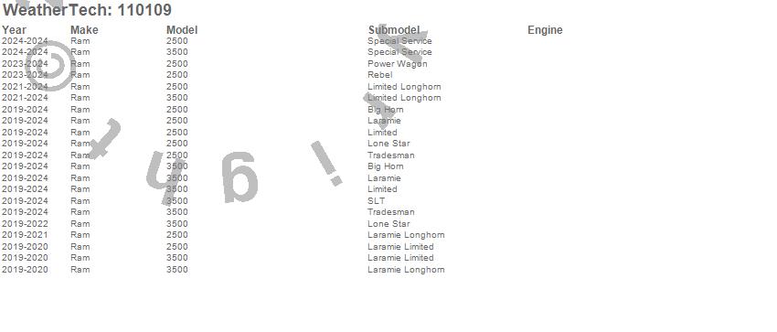 Below is an abbreviated list of applications for the MudFlap No-Drill DigitalFit.2500, 3500, Ram, 2024, 2023, 2022, 2021, 2020, 2019