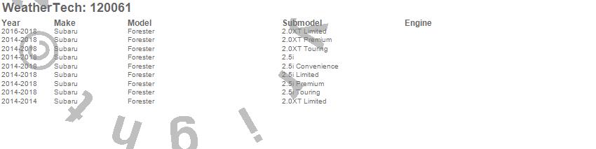 Below is an abbreviated list of applications for the MudFlap No-Drill DigitalFit.Forester, Subaru, 2018, 2017, 2016, 2015, 2014