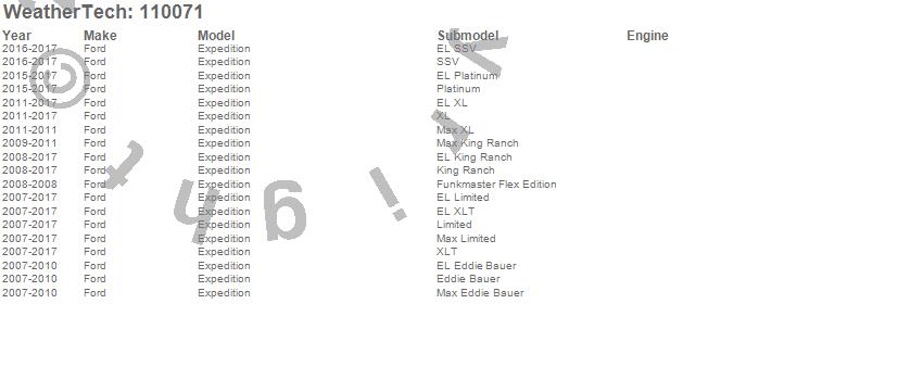 Below is an abbreviated list of applications for the MudFlap No-Drill DigitalFit.Expedition, Ford, 2017, 2016, 2015, 2014, 2013, 2012, 2011, 2010, 2009, 2008, 2007
