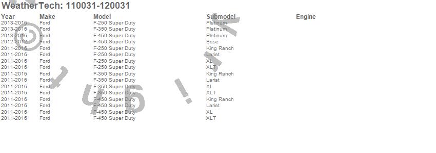 Below is an abbreviated list of applications for the MudFlap No-Drill DigitalFit MudFlap Kit.F-250 Super Duty, F-350 Super Duty, F-450 Super Duty, Ford, 2016, 2015, 2014, 2013, 2012, 2011