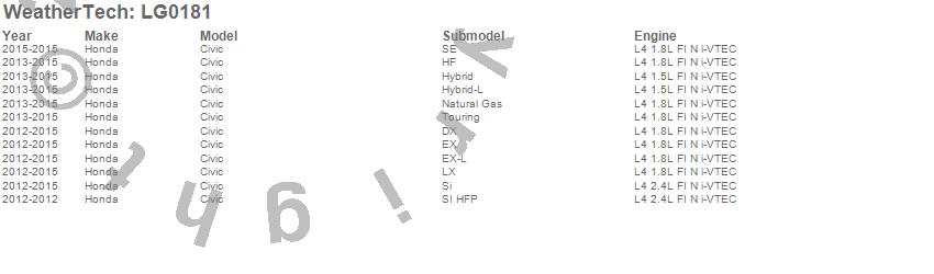 Below is an abbreviated list of applications for the LampGard.Civic, Honda, 2015, 2014, 2013, 2012