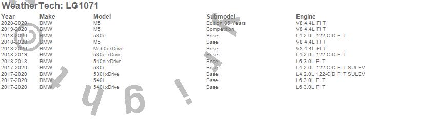 Below is an abbreviated list of applications for the LampGard.530e, 530e xDrive, 530i, 530i xDrive, 540d xDrive, 540i, 540i xDrive, M5, M550i xDrive, BMW, 2020, 2019, 2018, 2017