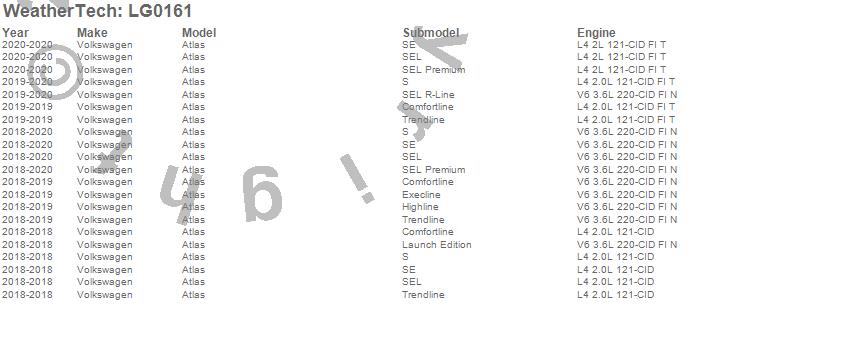Below is an abbreviated list of applications for the LampGard.Atlas, Volkswagen, 2020, 2019, 2018