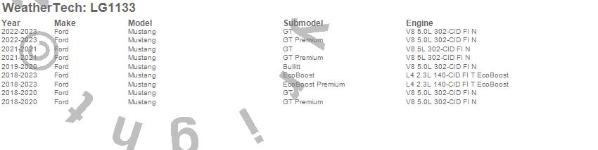 Below is an abbreviated list of applications for the LampGard.Mustang, Ford, 2023, 2022, 2021, 2020, 2019, 2018