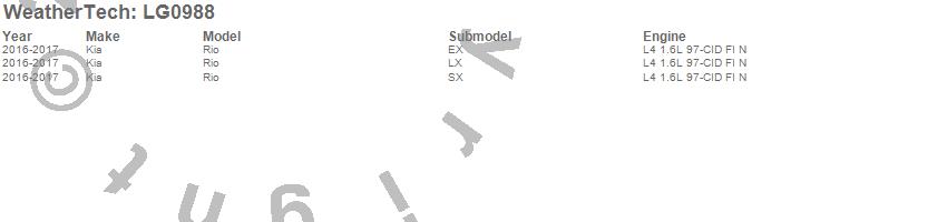 Below is an abbreviated list of applications for the LampGard.Rio, Kia, 2017, 2016