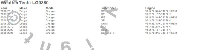 Below is an abbreviated list of applications for the LampGard.Charger, Dodge, 2010, 2009, 2008, 2007, 2006