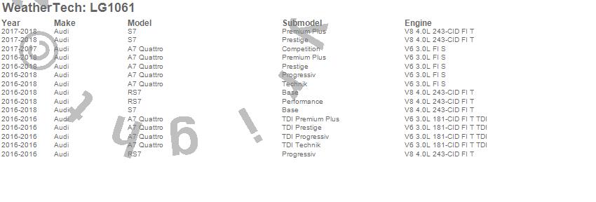 Below is an abbreviated list of applications for the LampGard.A7 Quattro, RS7, S7, Audi, 2018, 2017, 2016