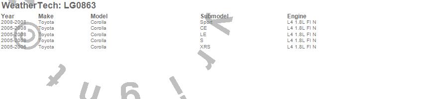 Below is an abbreviated list of applications for the LampGard.Corolla, Toyota, 2008, 2007, 2006, 2005