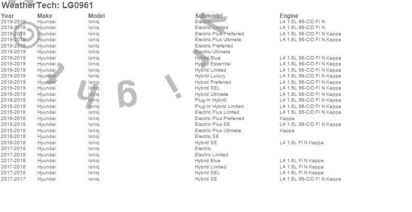 Below is an abbreviated list of applications for the LampGard.Ioniq, Hyundai, 2019, 2018, 2017