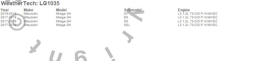 Below is an abbreviated list of applications for the LampGard.Mirage G4, Mitsubishi, 2019, 2018, 2017