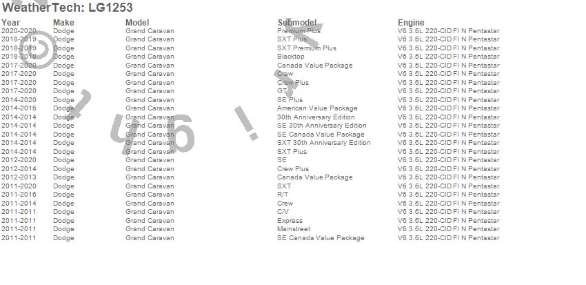 Below is an abbreviated list of applications for the LampGard.Grand Caravan, Dodge, 2020, 2019, 2018, 2017, 2016, 2015, 2014, 2013, 2012, 2011