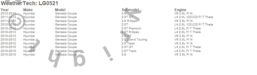 Below is an abbreviated list of applications for the LampGard.Genesis Coupe, Hyundai, 2012, 2011, 2010