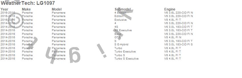 Below is an abbreviated list of applications for the LampGard.Panamera, Porsche, 2016, 2015, 2014