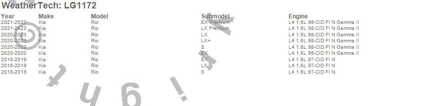 Below is an abbreviated list of applications for the LampGard.Rio, Kia, 2023, 2022, 2021, 2020, 2019, 2018