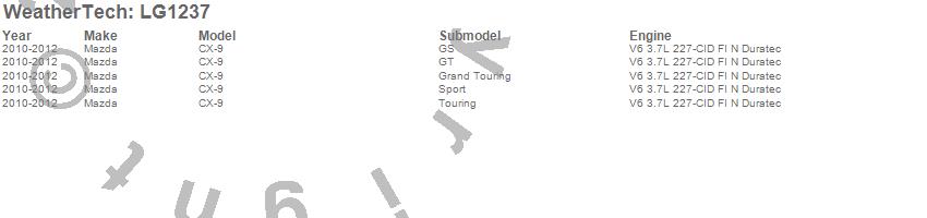 Below is an abbreviated list of applications for the LampGard.CX-9, Mazda, 2012, 2011, 2010