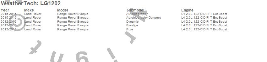 Below is an abbreviated list of applications for the LampGard.Range Rover Evoque, Land Rover, 2015, 2014, 2013, 2012