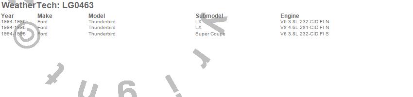 Below is an abbreviated list of applications for the LampGard.Thunderbird, Ford, 1995, 1994