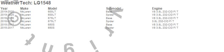 Below is an abbreviated list of applications for the LampGard.600LT, 650S, 675LT, McLaren, 2020, 2019, 2017, 2016, 2015