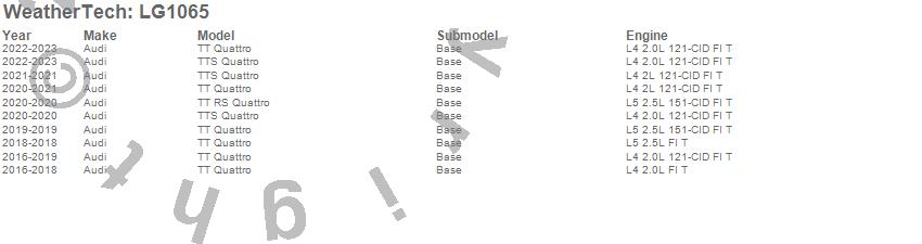 Below is an abbreviated list of applications for the LampGard.TT Quattro, TT RS Quattro, TTS Quattro, Audi, 2023, 2022, 2021, 2020, 2019, 2018, 2017, 2016