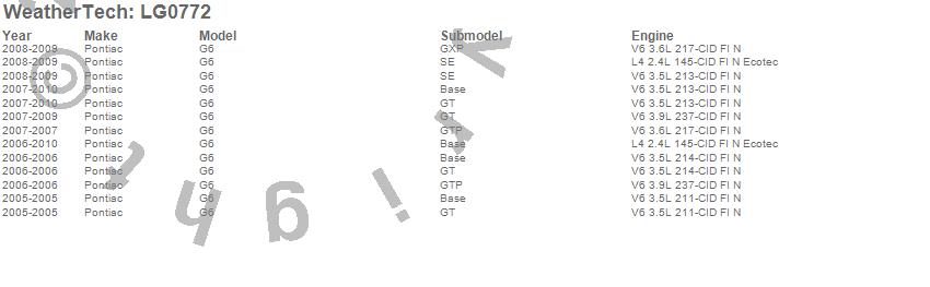 Below is an abbreviated list of applications for the LampGard.G6, Pontiac, 2010, 2009, 2008, 2007, 2006, 2005