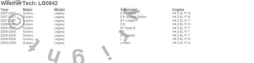 Below is an abbreviated list of applications for the LampGard.Legacy, Subaru, 2007, 2006, 2005