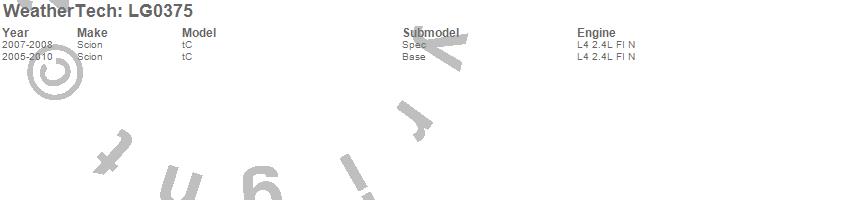 Below is an abbreviated list of applications for the LampGard.tC, Scion, 2010, 2009, 2008, 2007, 2006, 2005