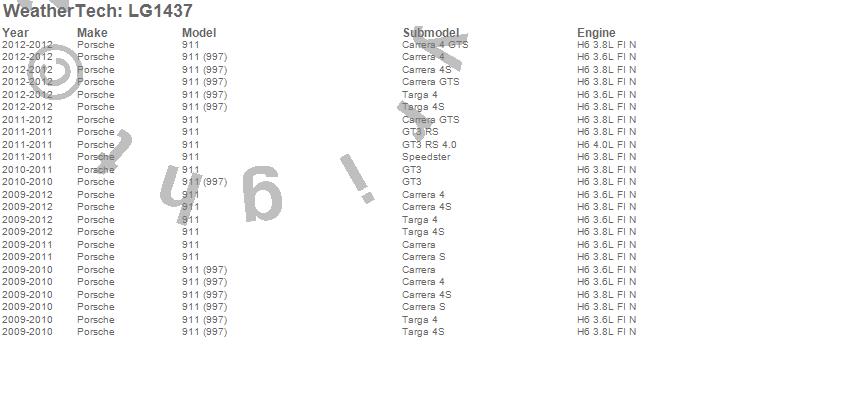 Below is an abbreviated list of applications for the LampGard.911, Porsche, 2012, 2011, 2010, 2009