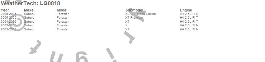 Below is an abbreviated list of applications for the LampGard.Forester, Subaru, 2005, 2004, 2003