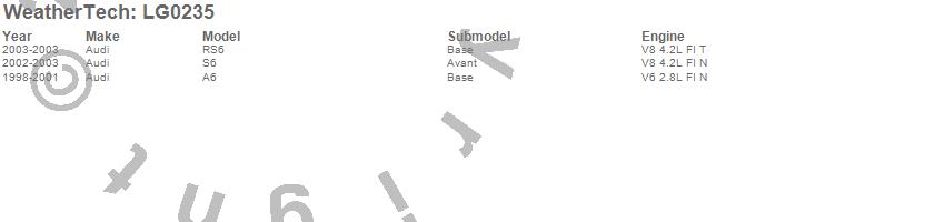 Below is an abbreviated list of applications for the LampGard.A6, RS6, S6, Audi, 2003, 2002, 2001, 2000, 1999, 1998