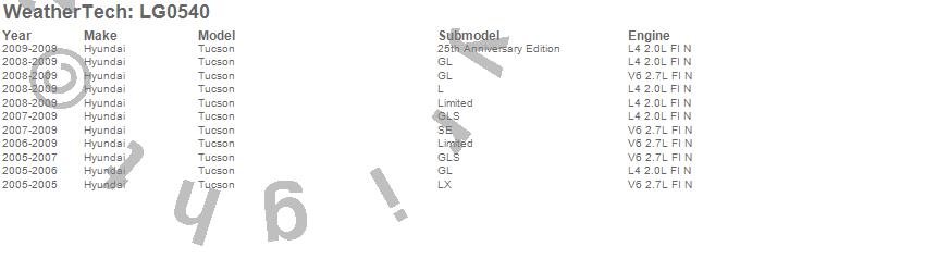 Below is an abbreviated list of applications for the LampGard.Tucson, Hyundai, 2009, 2008, 2007, 2006, 2005