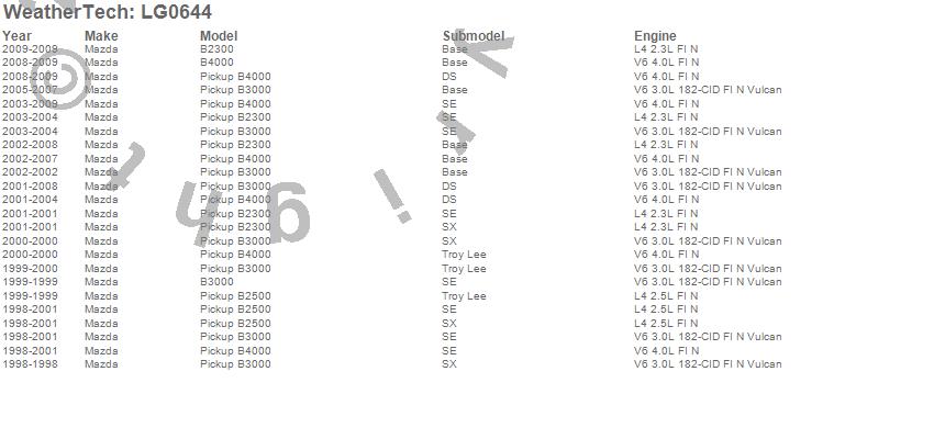 Below is an abbreviated list of applications for the LampGard.B2300, B2500, B3000, B4000, Mazda, 2009, 2008, 2007, 2006, 2005, 2004, 2003, 2002, 2001, 2000, 1999, 1998