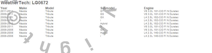 Below is an abbreviated list of applications for the LampGard.Tribute, Mazda, 2011, 2010, 2009, 2008