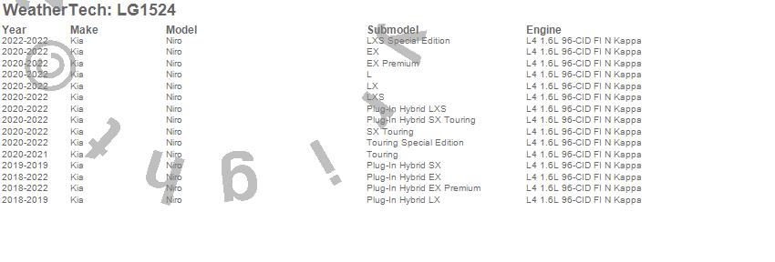 Below is an abbreviated list of applications for the LampGard.Niro, Kia, 2022, 2021, 2020, 2019, 2018