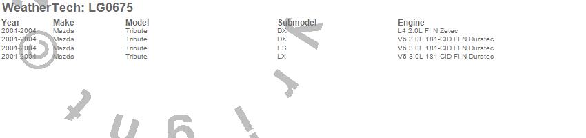 Below is an abbreviated list of applications for the LampGard.Tribute, Mazda, 2004, 2003, 2002, 2001