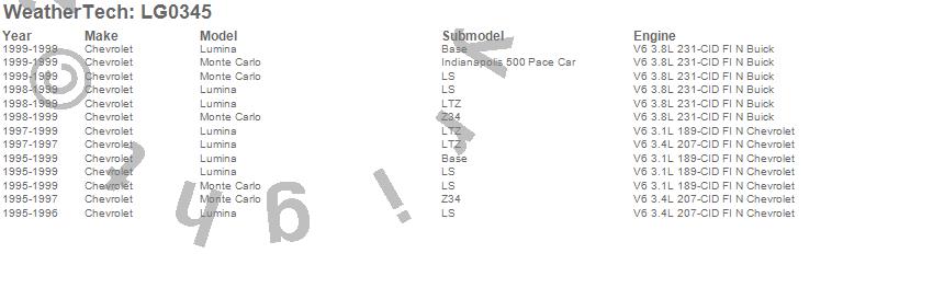 Below is an abbreviated list of applications for the LampGard.Lumina, Monte Carlo, Chevrolet, 1999, 1998, 1997, 1996, 1995
