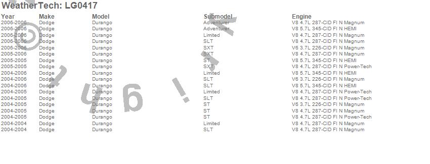 Below is an abbreviated list of applications for the LampGard.Durango, Dodge, 2006, 2005, 2004