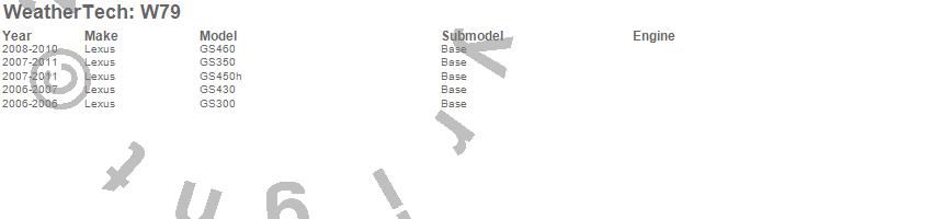 Below is an abbreviated list of applications for the All Weather Floor Mats.GS300, GS350, GS430, GS450h, GS460, Lexus, 2011, 2010, 2009, 2008, 2007, 2006