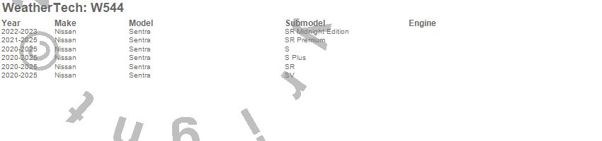 Below is an abbreviated list of applications for the All Weather Floor Mats.Sentra, Nissan, 2025, 2024, 2023, 2022, 2021, 2020