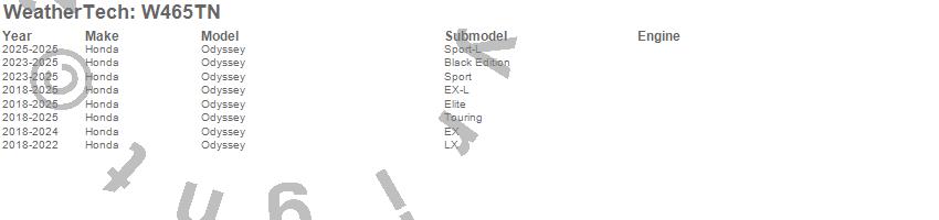 Below is an abbreviated list of applications for the All Weather Floor Mats.Odyssey, Honda, 2026, 2025, 2024, 2023, 2022, 2021, 2020, 2019, 2018