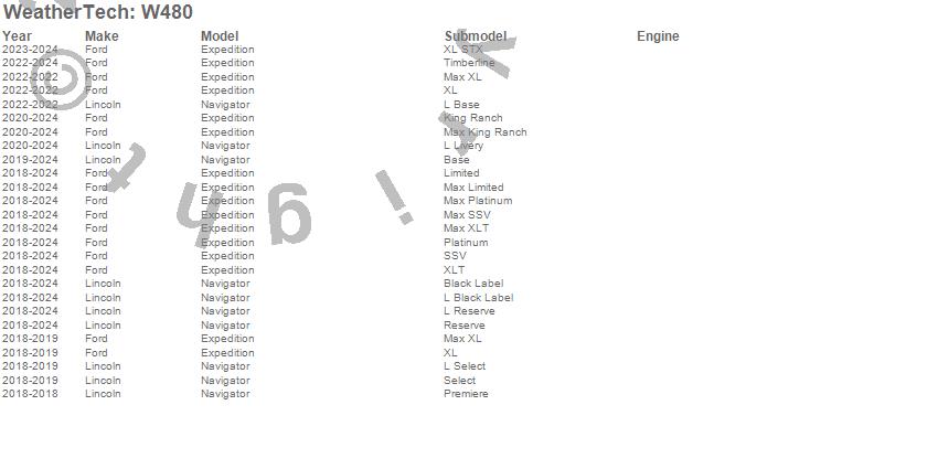 Below is an abbreviated list of applications for the All Weather Floor Mats.Expedition, Navigator, Ford, Lincoln, 2024, 2023, 2022, 2021, 2020, 2019, 2018