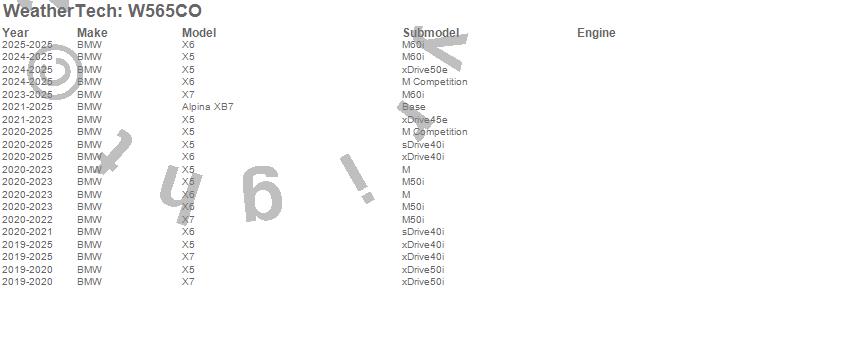 Below is an abbreviated list of applications for the All Weather Floor Mats.Alpina XB7, X5, X6, X7, BMW, 2025, 2024, 2023, 2022, 2021, 2020, 2019