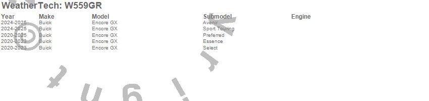 Below is an abbreviated list of applications for the All Weather Floor Mats.Encore GX, Buick, 2025, 2024, 2023, 2022, 2021, 2020