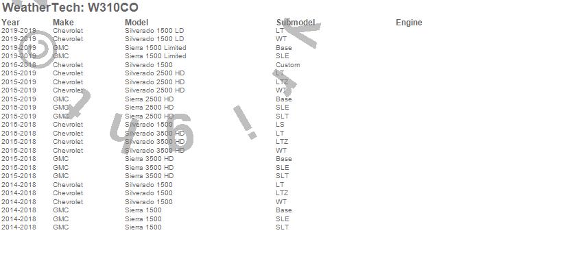 Below is an abbreviated list of applications for the All Weather Floor Mats.Sierra 1500, Sierra 1500 Limited, Sierra 2500 HD, Sierra 3500 HD, Silverado 1500, Silverado 1500 LD, Silverado 2500 HD, Silverado 3500 HD, Chevrolet, GMC, 2019, 2018, 2017, 2016, 2015, 2014