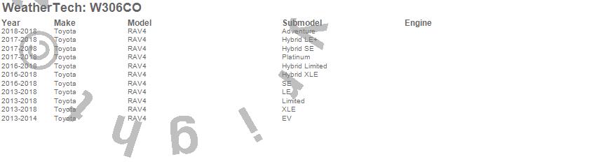 Below is an abbreviated list of applications for the All Weather Floor Mats.RAV4, Toyota, 2018, 2017, 2016, 2015, 2014, 2013