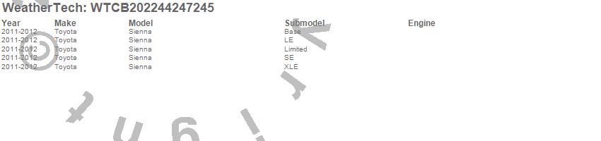 Below is an abbreviated list of applications for the All Weather Floor Mats.Sienna, Toyota, 2012, 2011