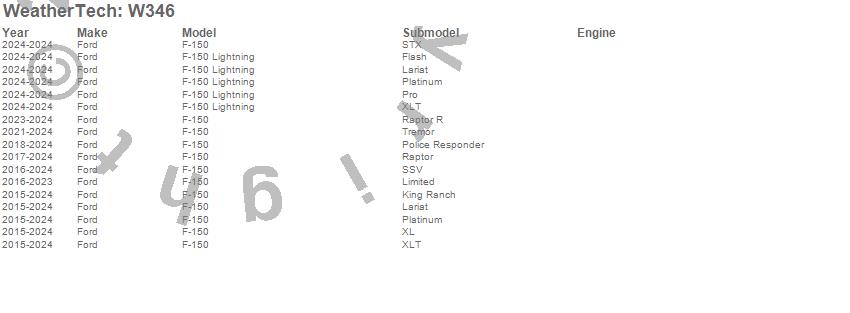Below is an abbreviated list of applications for the All Weather Floor Mats.F-150, F-150 Lightning, Ford, 2025, 2024, 2023, 2022, 2021, 2020, 2019, 2018, 2017, 2016, 2015