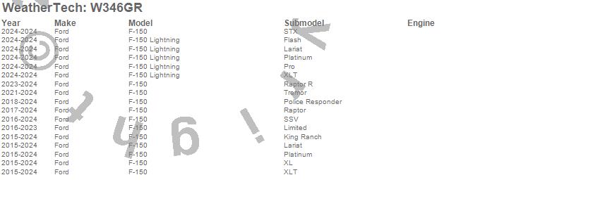 Below is an abbreviated list of applications for the All Weather Floor Mats.F-150, F-150 Lightning, Ford, 2025, 2024, 2023, 2022, 2021, 2020, 2019, 2018, 2017, 2016, 2015