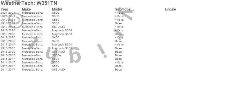 Below is an abbreviated list of applications for the All Weather Floor Mats.Maybach S550, Maybach S560, Maybach S600, Maybach S650, S450, S500, S550, S550e, S560, S580, S600, S63 AMG, S65 AMG, Mercedes-Benz, 2021, 2020, 2019, 2018, 2017, 2016
