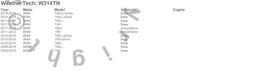 Below is an abbreviated list of applications for the All Weather Floor Mats.740i, 740Ld xDrive, 740Li, 740Li xDrive, 750i, 750i xDrive, 750Li, 750Li xDrive, 760Li, BMW, 2015, 2014, 2013, 2012, 2011, 2010, 2009